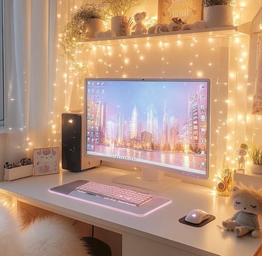 At the end of the day, it’s all about creating a space that feels good to be in. Imagine a beautiful white speaker (if you're going for the neutral vibe) sitting on the shelf, adding decor and adding to the ambiance at the same time. Add music, adjust the lighting, and include items that inspire you. Whether it’s a favorite throw pillow, a cherished photo in a beautiful string line with fairy lights, or your favorite books stacked neatly nearby, the details make all the difference. The goal is to craft a workspace that feels less like a chore and more like a cozy escape.