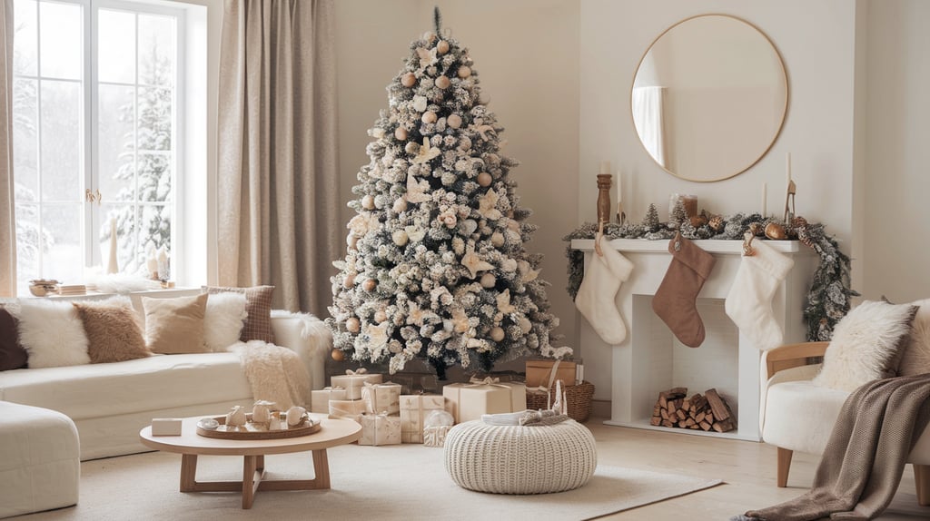 If you prefer something more minimalist, the Scandinavian style might be the way to go. It’s all about keeping things clean, cozy, and simple. Natural elements like wooden ornaments, white lights, and dried orange garlands create that relaxed, hygge feel. The neutral colors make it beautiful in its simplicity, offering an understated elegance that makes any room feel welcoming.