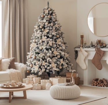 For those who love a rustic feel, a farmhouse-style Christmas tree might be the ideal fit. Burlap ribbons, wooden accents, pinecones, and animal-shaped ornaments all contribute to that down-to-earth, farmhouse aesthetic. With natural colors and textures, this style feels authentic and charming, offering a warm, inviting holiday atmosphere.